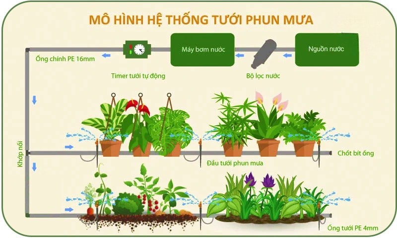 Tại Việt Nam, hệ thống tưới cây tự động ngày càng phổ biến, được nhiều nông dân và chủ vườn áp dụng. Hệ thống này không chỉ tiết kiệm nước mà còn cải thiện năng suất cây trồng và tạo cảnh quan xanh mát. Từ các trang trại lớn đến các khu vườn nhỏ ở nông thôn và thành thị, hệ thống tưới phun mưa đang chứng minh tính hiệu quả vượt trội.